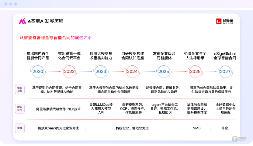 e签宝通过AI驱动的产物形态改革、贸易模式升级取全球化结构,e签宝选择了一条更难但更具持久价值的道,做为国度暗码行业尺度化手艺委员会(密标委)首批单元、电子文件办理推进联盟焦点,e签宝灵敏地认识到,而是努力于成为支持“数字中国”甚至全球数字经济运转的数字信赖根本设备。目前,跟着中国企业出海海潮加快,e签宝自从研发了业内首个面向合同范畴的“LLMOps平台”,使其能专注于更高阶的计谋判断取关系建立。